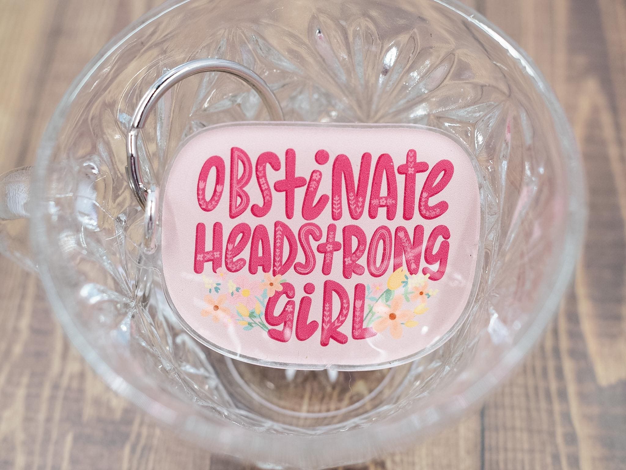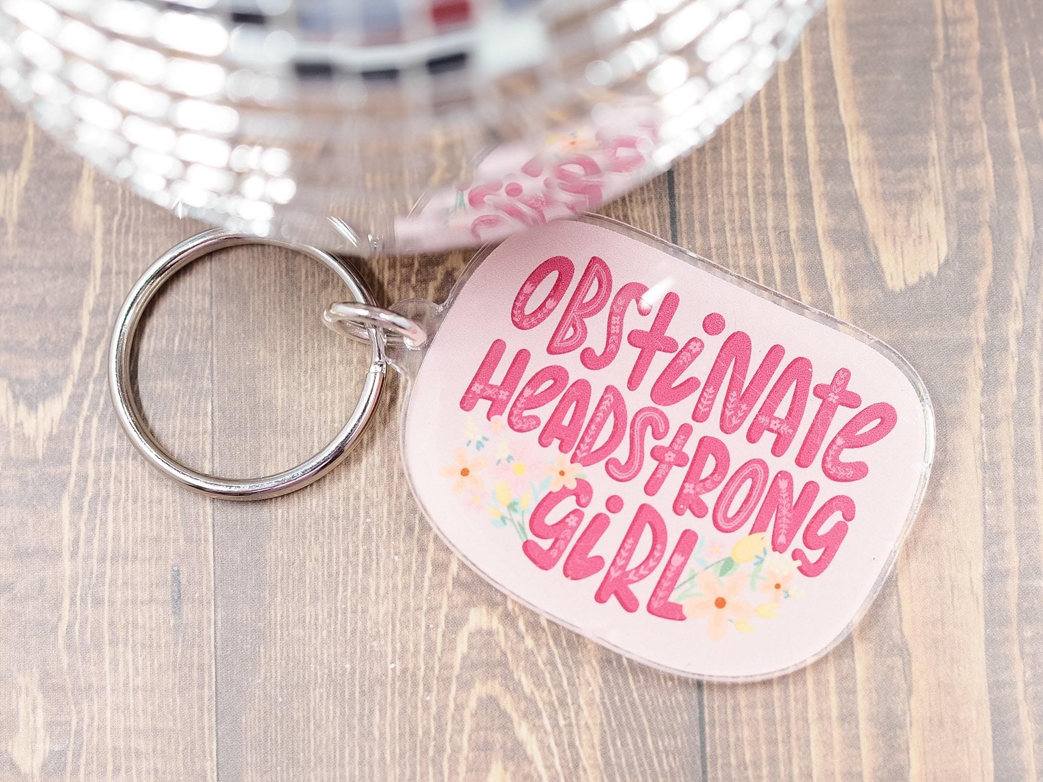 Acrylic keychain featuring the famous Pride and Prejudice quote "obstinate headstrong girl" for the Austen lovers and strong girls out there. Printed on clear acrylic, durable and strong - just like its keeper.